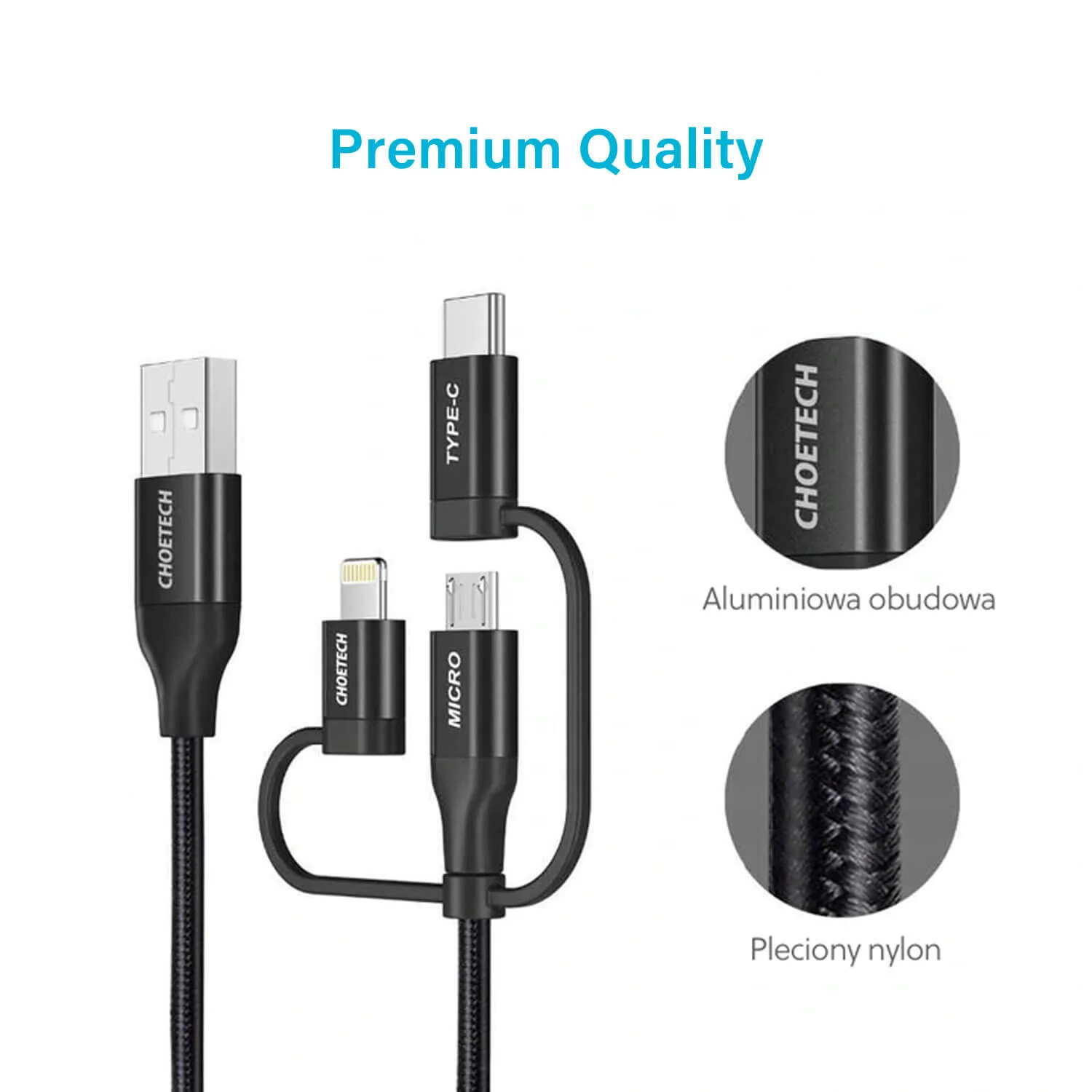 Choetech MFI Certified 3 in 1 Charging Cable Black
